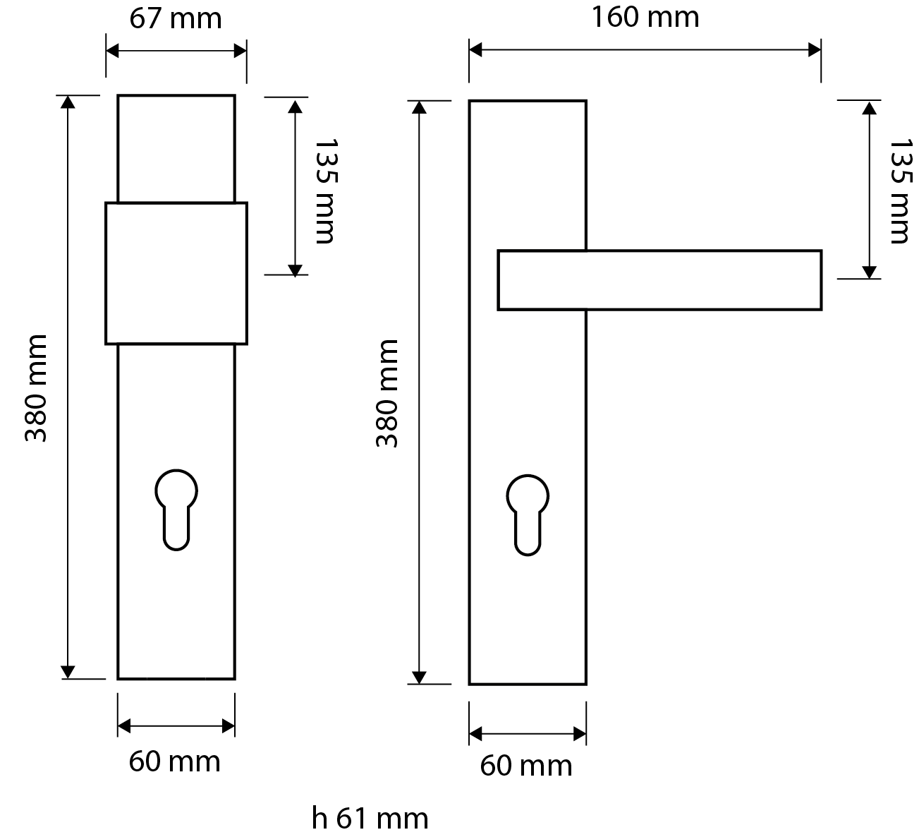 Türklinke (re o. li) + Haustürknauf auf Schild art.1055