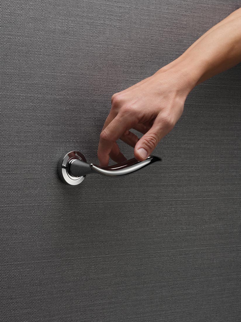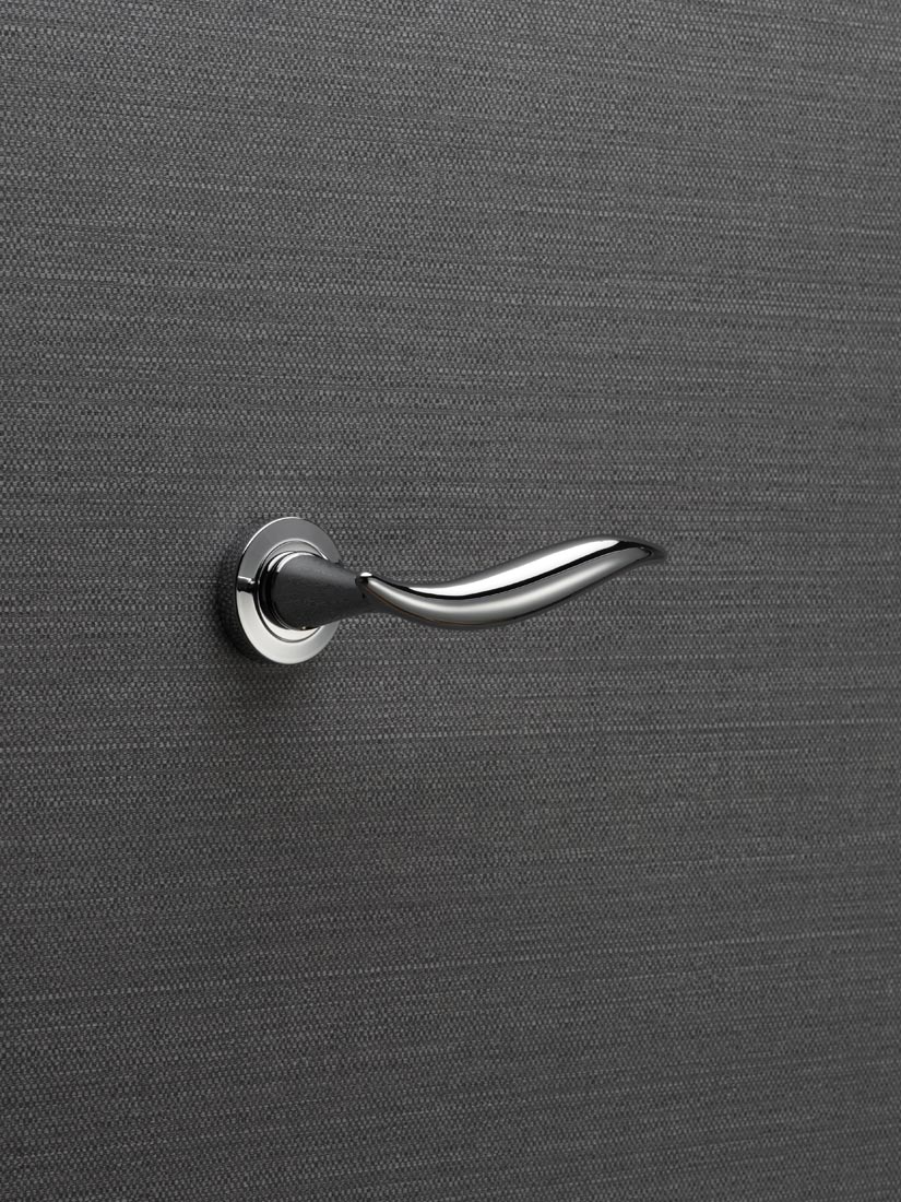 Это ручка, которая не стремится к эффектности, а скорее к гармонии с окружающим пространством. Vela сдержанно и со вкусом дополняет пантографированную дверь, классический интерьер, где округлые формы и мягкие линии находят воплощение в текстиле, рамах, тёплом освещении.